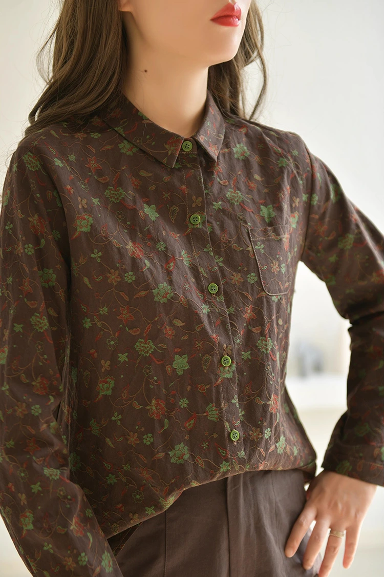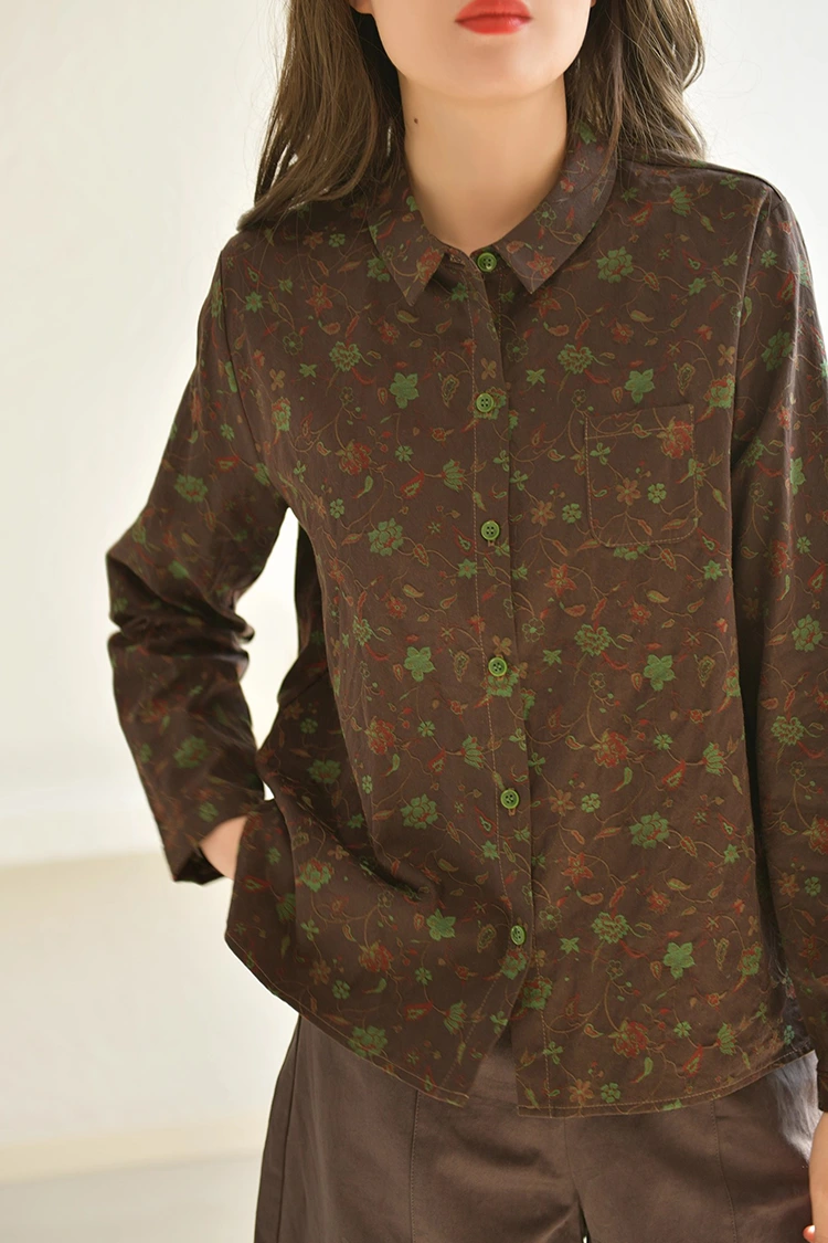 衣服を快適に着るためには、まず生地が重要です。レディース花柄カジュアルブラウスは、春と秋の季節に市場で最も人気のある生地素材である100%高品質の純綿生地で作られています。快適で実用的なアイテムを求めるバイヤーの中心的な要求を完全に満たします。純綿生地は通気性に優れ、吸湿性も抜群です。春と秋に汗をかかずに涼しく感じられ、肌に優しく刺激がなく、あらゆる肌質の方に適しており、長時間着用しても不快感がありません。最終消費者の着用体験を大幅に向上させることができます。同時に、純綿生地は優れた靭性を備え、耐久性があり、洗濯可能です。毎日洗濯しても、繊維が抜けず、変形せず、色あせしません。印刷されたパターンは長期間鮮明で完全な状態を保つことができ、複雑なケアの必要はありません。これにより、購入者のアフターセールスコストが大幅に削減されます。薄すぎず厚すぎないちょうど良い生地の厚みで、一枚着や重ね着など様々な着こなしに適しています。日常のカジュアルシーンだけでなく、軽い通勤ニーズにも対応し、最終消費者の販売シーンをさらに拡大します。