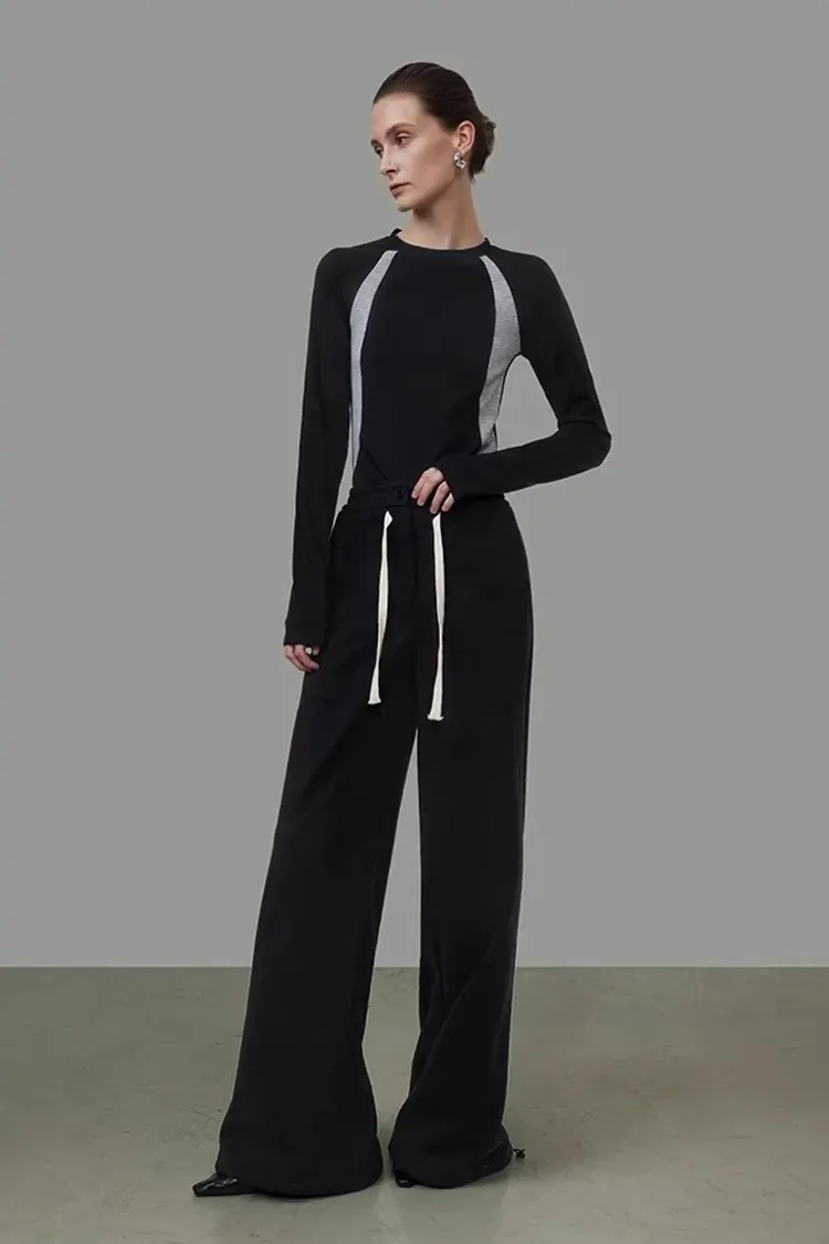マイクロAシェイプのワイドパンツスタイルと3D立体裁断を採用。細部の調整を重ね、よりアジア人の体型にフィットする形状に仕上げました。ハイウエストとワイドウエストのトップスデザインが効果的にウエストラインを引き上げ、自然な垂れ具合のドローストリングと相まって、かさばらずシンプルですっきりとしたデザインです。パンツの形状はウエスト、腹部、ヒップ、脚に強い効果があり、さまざまな体型に対応でき、スレンダーなプロポーションとエレガントな気質を簡単に表現できます。