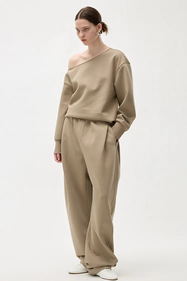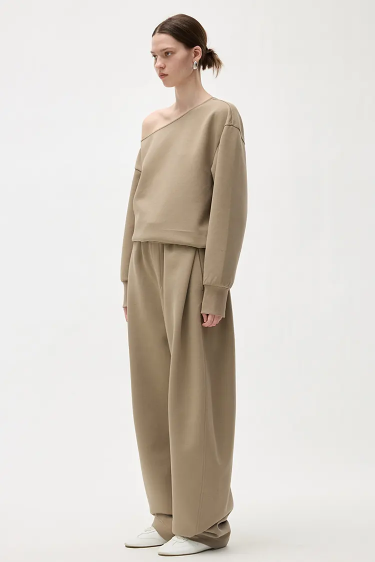 パンツのウエストバンド全体にはプリーツ技術が施されています。ゆったりとした快適なフィット感で、エレガントなスタイルを演出します。様々な脚の形を美しく整えることができ、脚のラインの自由度が高くなります。ゆったりとしたワイドレッグカットは体型に制限されず、視覚的に脚をより細くまっすぐに見せます。歩くと自然なドレープが出ます。カジュアルパンツのカジュアルさと自由さを残しつつ、ワイドパンツのきちんと感と上品さを兼ね備えています。普通のスウェットパンツとは異なり、よりファッション性と洗練感が強くなります。ターゲット層は幅広く、売上換算も安定しています。
