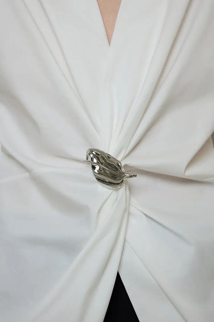 レディース メタル バックル パーティー ブラウスは、非対称のウエストの結び目と立体的なメタル ボタンを組み合わせた装飾が特徴です。視覚的な焦点が際立っており、ウエストラインを自然に引き締め、曲線を強調します。また、プリーツを使用することで体型を柔らかくし、さまざまな体型に高い柔軟性を提供します。クロスしたVネックがすっきりと上品で、ハリのある滑らかな生地で軽くて崩れにくいのも特徴です。日常着としてのシャツの実用性とパーティートップスのファッション性を兼ね備えており、多彩な着用と強力な視認性を可能にします。