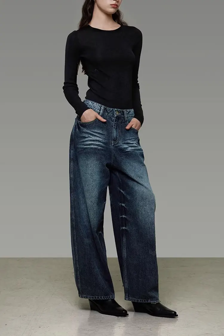 レディース ウォッシュド デニム ワイドレッグ パンツは、クラシックなハイウエスト デザインとゆったりとしたワイドレッグ カットが特徴です。脚のカバー力が非常に高く、脚の小さな欠陥を自然に隠すことができます。パンツはウエストから下に自然に落ち、歩くたびに優雅かつ自由に流れます。全体的な見た目はすっきりしていて、かさばったり肥大したりすることはありません。脚のラインを長く見せ、カジュアルかつエレガントなレトロな雰囲気を演出します。作業着にも日常着にも適しています。