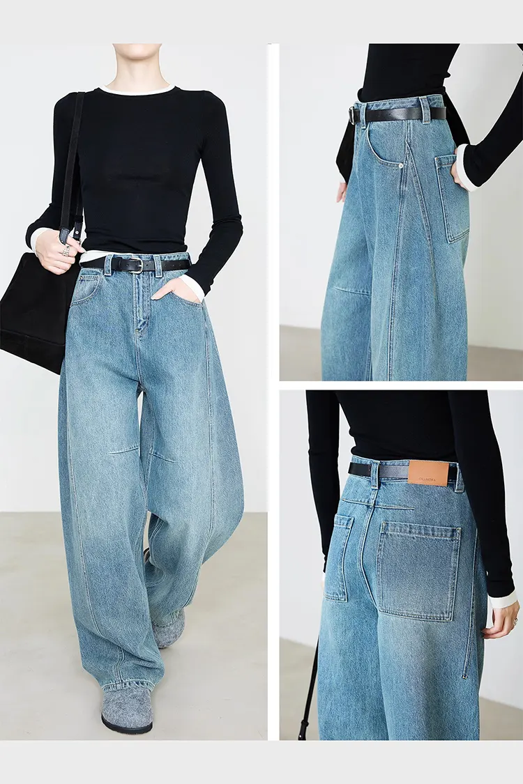 レディースワイドレッグデニムパンツは100%ピュアコットンで作られており、優れた通気性と柔らかさが特徴で、肌に優しいです。長時間履いていても蒸れにくく、快適な履き心地です。暑い季節には涼しさを保ち、涼しい日には十分な暖かさを提供します。